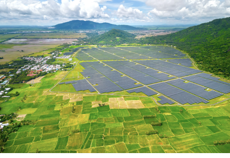 A solar farm bordered by rice fields in Vietnam (Image: Thoai Pham / Alamy)